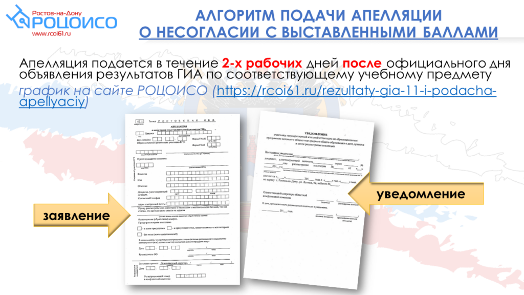 Срок подачи — в течение двух рабочих дней после официального дня объявления результатов ГИА по соответствующему учебному предмету.