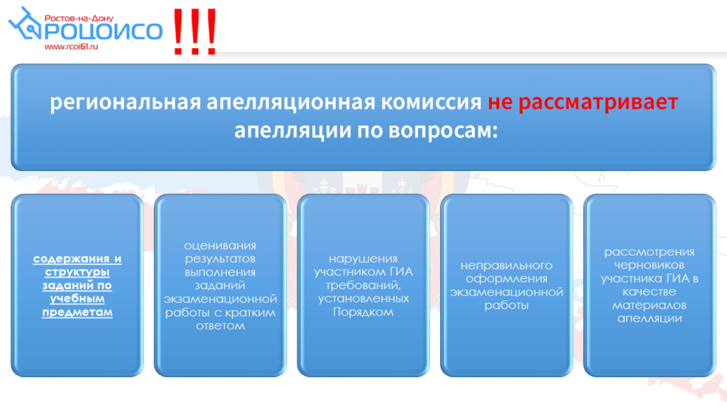 Апелляционная комиссия не рассматривает апелляции по вопросам: