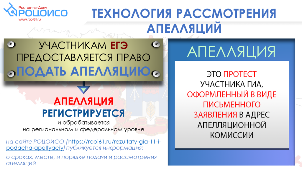 Апелляция и заключение о результатах проверки в тот же день передаются членами ГЭК в апелляционную комиссию.