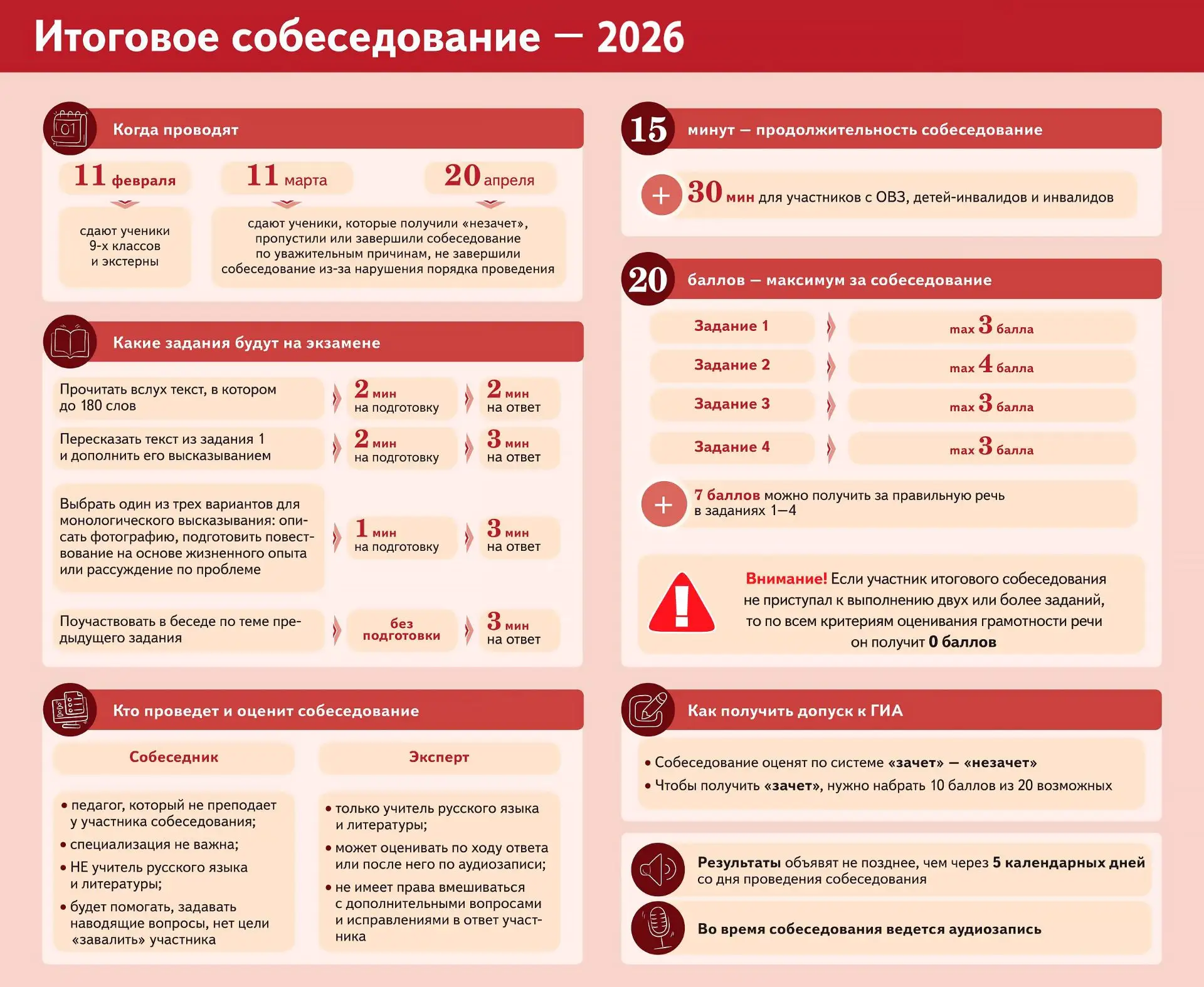 Итоговое собеседование по русскому языку для обучающихся 9 классов в 2026 году
